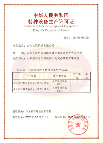 山東桂冠機(jī)械有限公司成立于2008年,注冊資金1600萬元,現(xiàn)有員工200多人,中高級技術(shù)管理人員45人,占地面積27000多平方米,生產(chǎn)車間面積12000多平方米。公司具備壓力容器產(chǎn)品的設(shè)計、制造(證書編號為:TS2237703-2025)、壓力管道安裝(證書編號為TS3837607-2025)全套壓力容器資質(zhì);通過國家ISO9001質(zhì)量管理體系認(rèn)證、美國ASME認(rèn)證、歐盟CE認(rèn)證;擁有建筑安裝機(jī)電工程專業(yè)承包叁級資質(zhì)、建筑工程施工總承包叁級資質(zhì)及對外貿(mào)易經(jīng)營出口權(quán)…